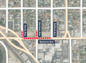 • Intermittent lane closures along Belmont Avenue, between Farris and Safford avenues.
