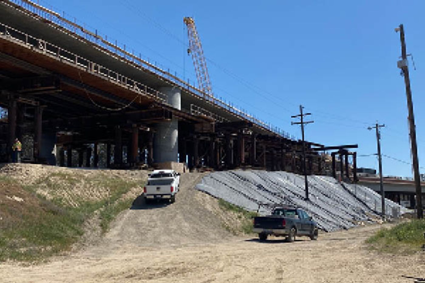 This month, Idaho Avenue was closed to traffic to allow hauling to begin for construction of an overpass. More than 11,000 yards of dirt have been imported to the site as crews prepare the slopes and compact dirt for the structure. As many as 15 haul trucks are being used each day to transport the fill-dirt.