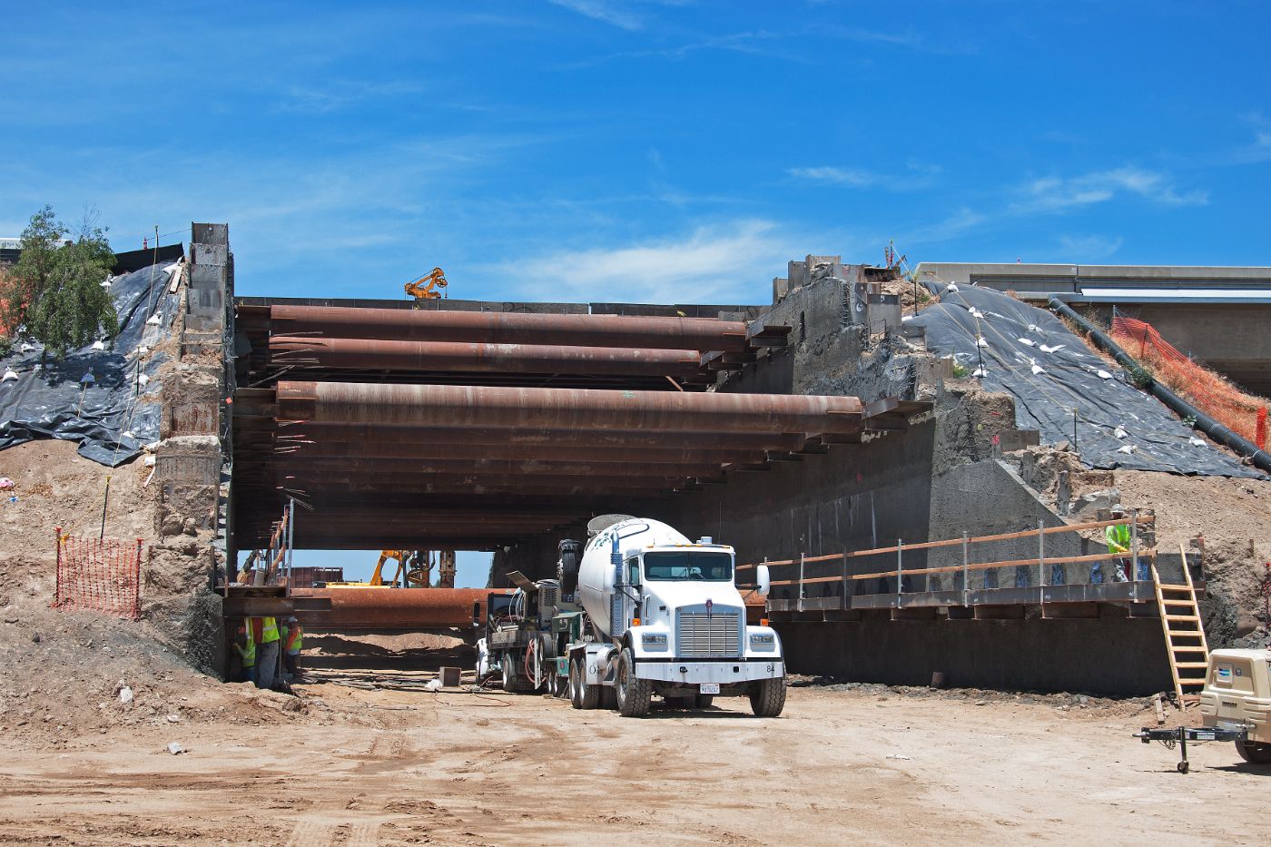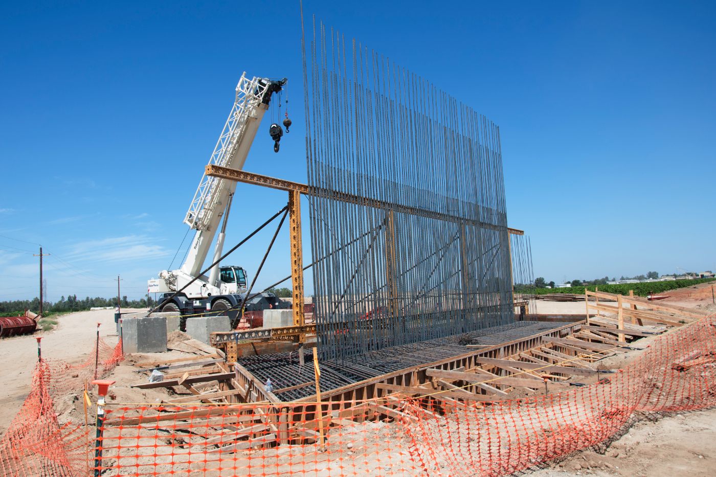 At the overcrossing for Road 27 in Madera County, crews are busy preparing for the placement of concrete girders next month. Here at the northern end of Construction Package 1, the Road 27 overcrossing will take traffic over the high-speed rail line and existing tracks for BNSF.