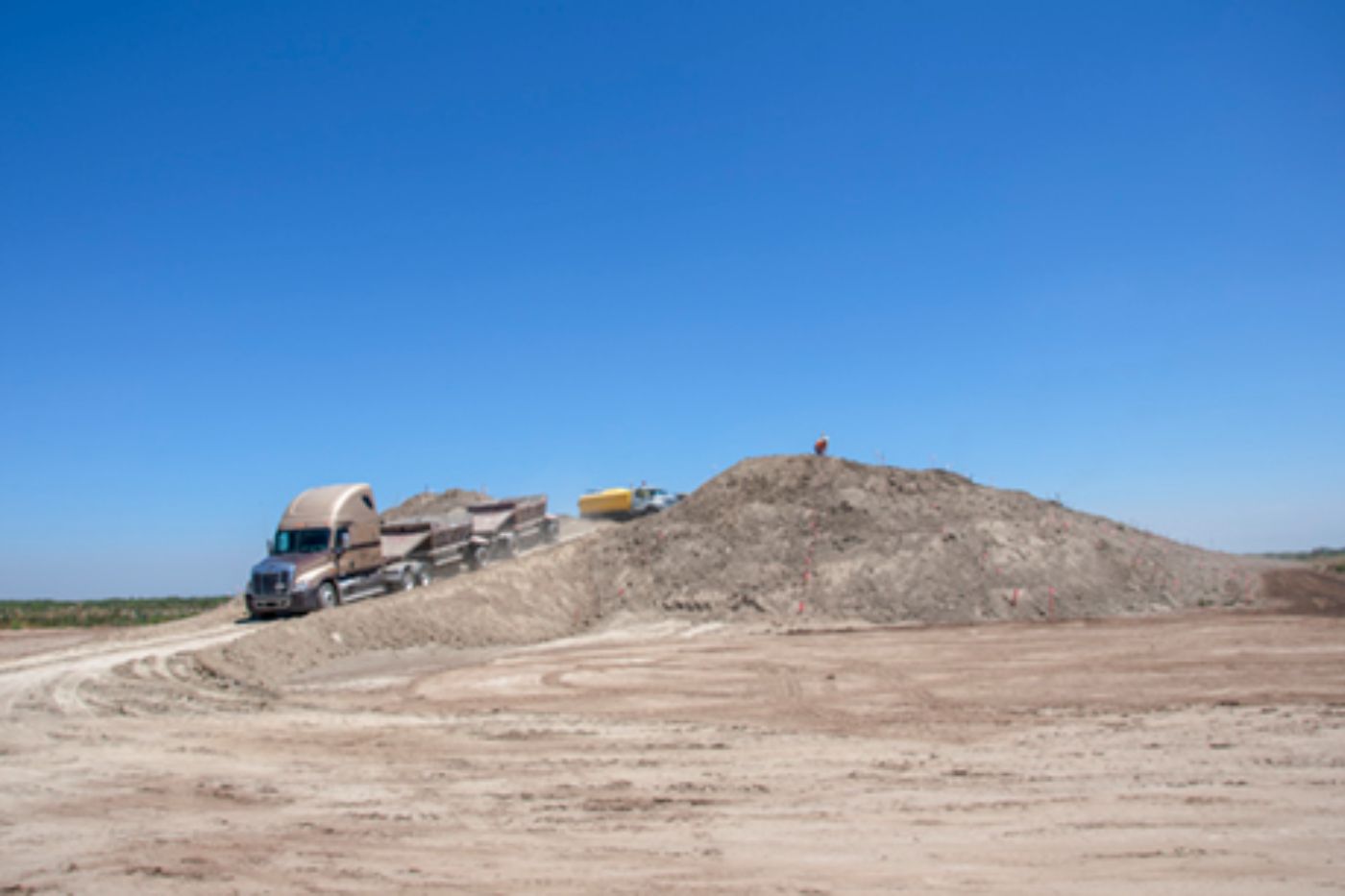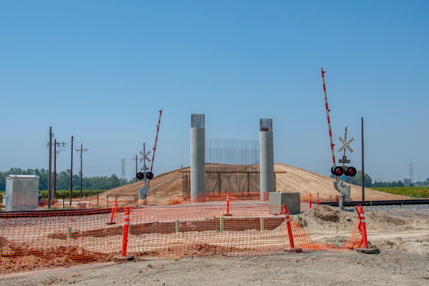 Also in Kings County, construction has begun on two new overcrossings, one at Flint Avenue and one at Fargo Avenue east of SR 43 just outside of Hanford. About 49 trucks per hour are hauling approximately 56,000 cubic yards of earth per day to build up the embankments.