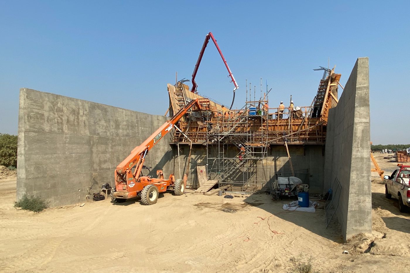 In July, crews performed the largest single concrete placement to happen to date in Construction Package 4 at Poso Creek. More than 100 trucks placed more than 1,000 cubic-yards to form the deck of the superstructure. In August, crews placed another 535 cubic-yards of concrete to form the east and west stemwalls.